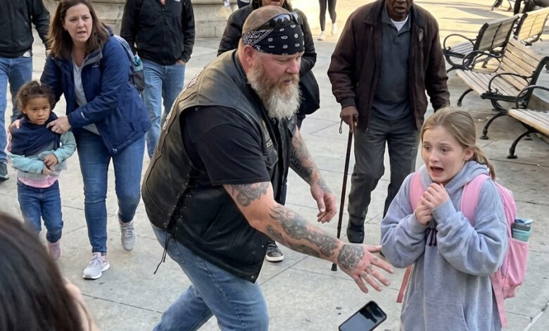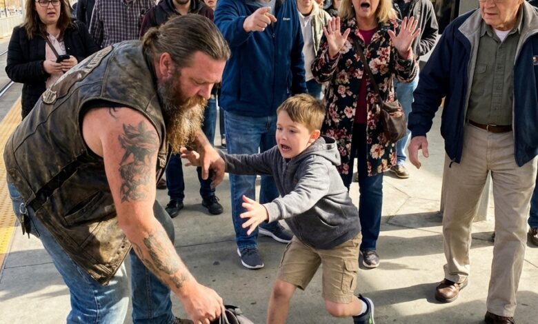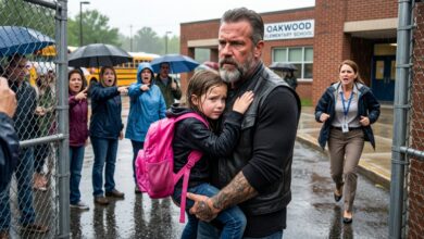 The whole park froze when a tattooed biker grabbed a little girl by the arm…