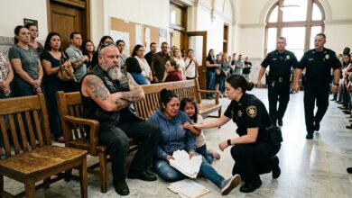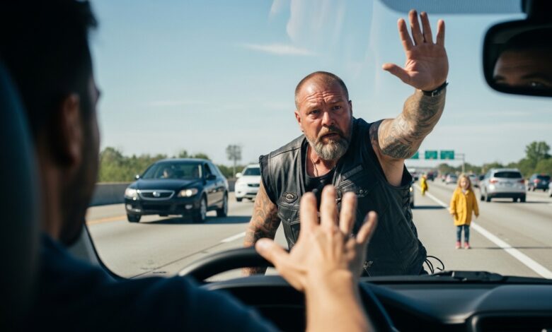 “You’re not going in there,” the biker said, stepping between a desperate father and the…