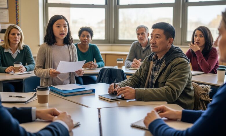 An Immigrant Father With Broken English Was Mocked at a Parent Meeting — Until His Daughter Spoke and the Room Fell Silent