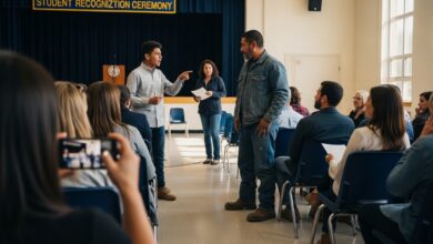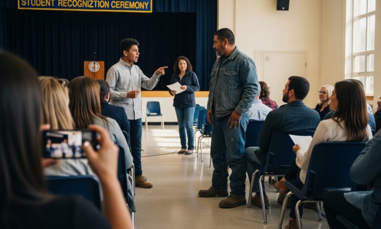 The Delivery Driver Father Stopped at the Awards Night — Until the Principal Stepped Out and Introduced Him