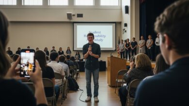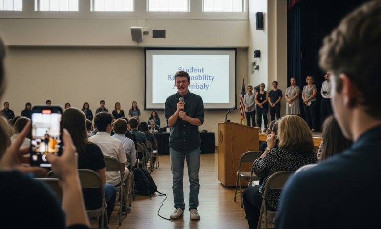 The principal adjusted the microphone, glanced at the wrinkled shirt in the front row, and…