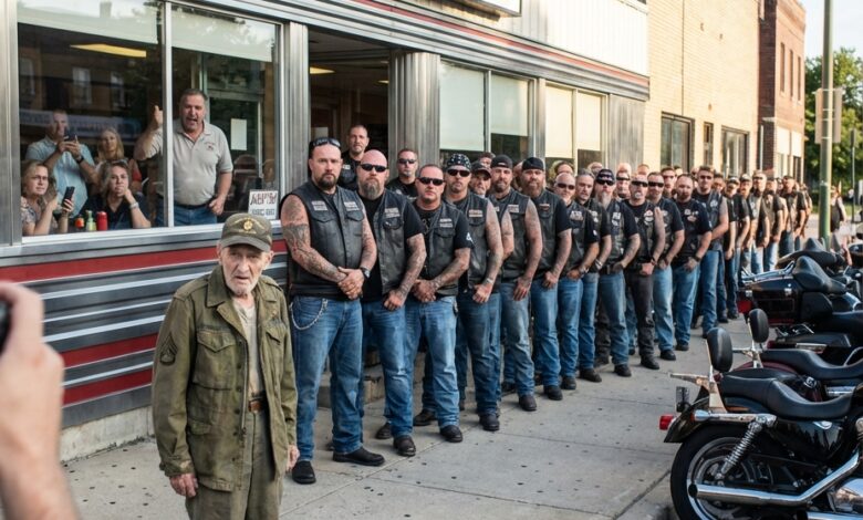 The moment the spotlight hit his face, the most honored biker in the room turned…