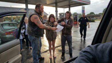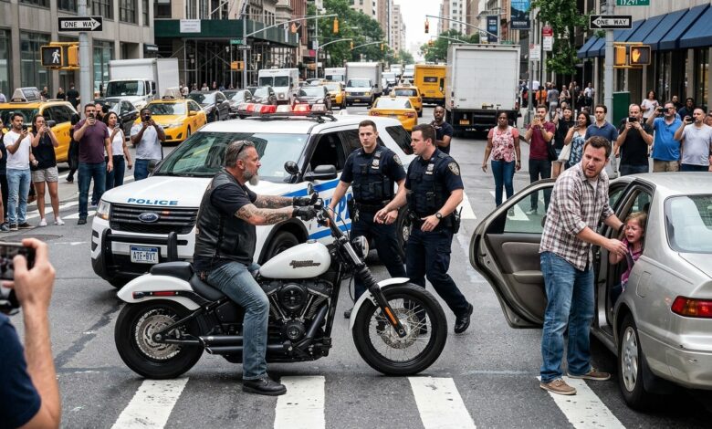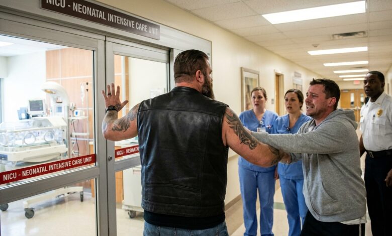 “Move,” the biker said, lifting the injured woman into his arms right in front of…