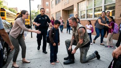 The Veteran Father Was Stopped at the School Gate for “Looking Dangerous” — When the National Anthem Played, the Entire Stadium Turned Toward Him