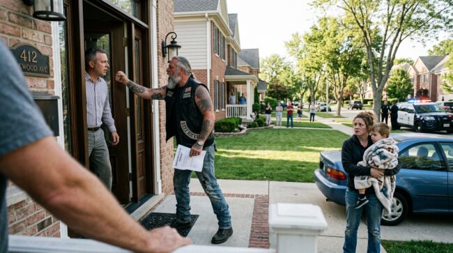 This was Maple Ridge, Ohio, just outside Dayton, where the lawns were trimmed, the mailboxes matched, and nobody expected a biker to show up at 7:18 p.m. demanding to see a man named Richard Lowell.