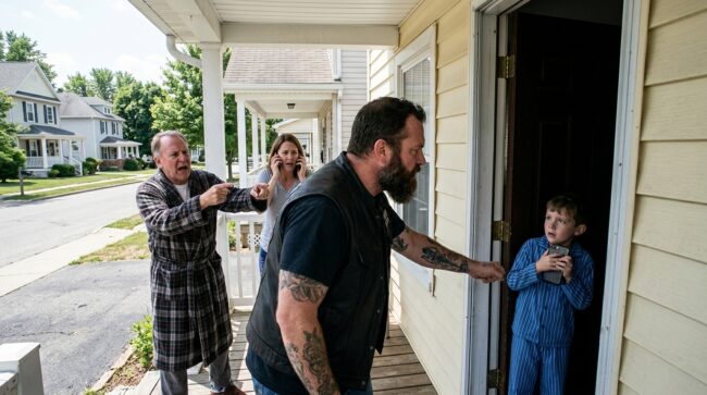 He was smaller than Wade had imagined from the voice. Eight, maybe closer to seven in that moment, because fear has a way of shrinking children. Thin arms. Blue flannel pajama pants. One sock missing. His mother’s old phone clutched so tightly his knuckles had gone pale.