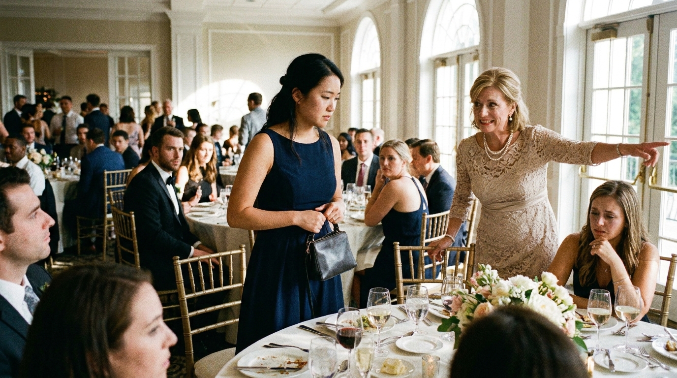 The waiter paused mid-pour as a well-dressed woman leaned in, lowered her voice just enough, and said, “I think it would be best if you left this table,” while everyone pretended not to hear.