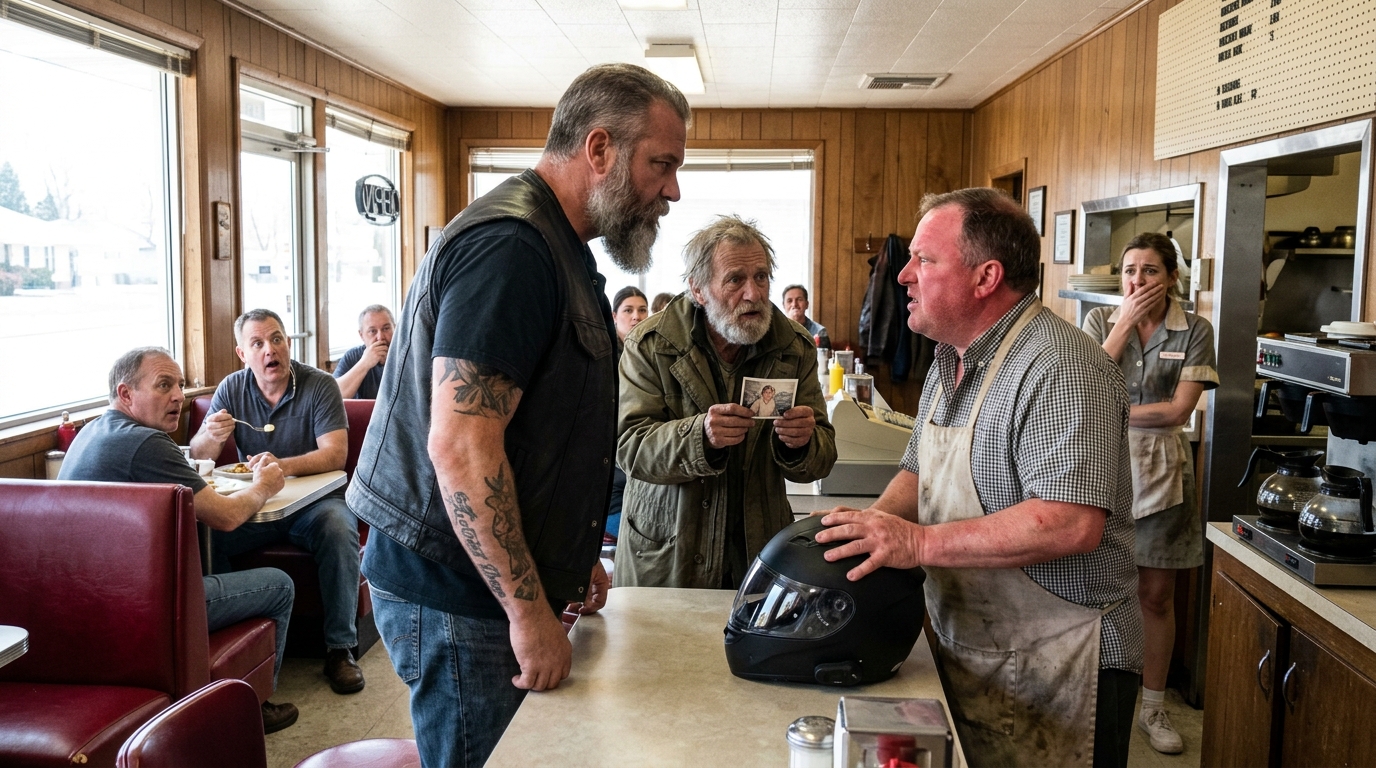 They Laughed at the Homeless Old Man in the Diner—Then the Biker Set His Helmet on the Table