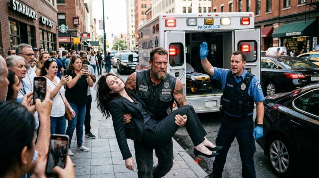 “Move,” the biker said, lifting the injured woman into his arms right in front of the ambulance crew, “or I’m getting her there myself.”