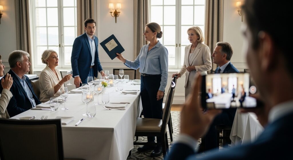 Claire’s father cleared his throat. An uncle leaned back in his chair. Someone adjusted their cufflinks. It felt less like a dinner and more like a quiet trial.