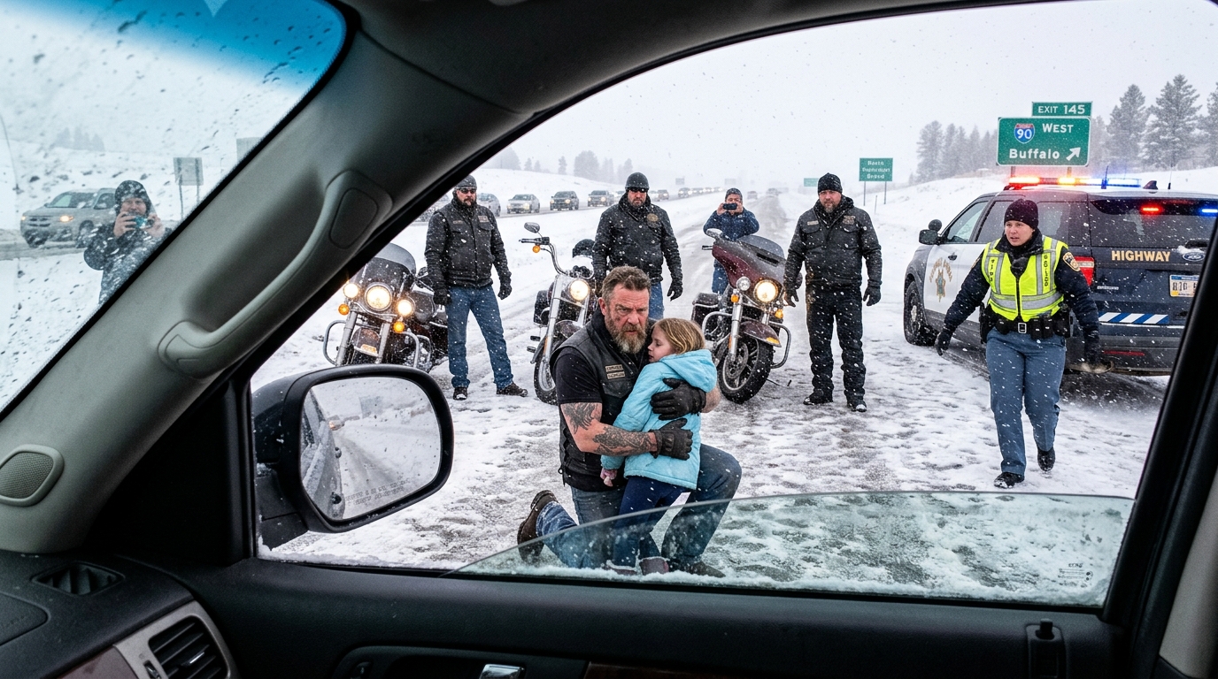 The lead biker barked the words as he slammed his brakes on an icy roadside and stepped off into the snow, towering over a small figure curled against a guardrail, and for a second he looked like the most dangerous thing out there.
