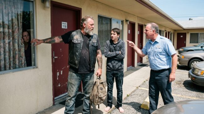 “Take one more step and you’re not sleeping outside tonight,” the biker said, blocking the motel door while a soaked teenage boy stood frozen in the rain—why was he stopping him?